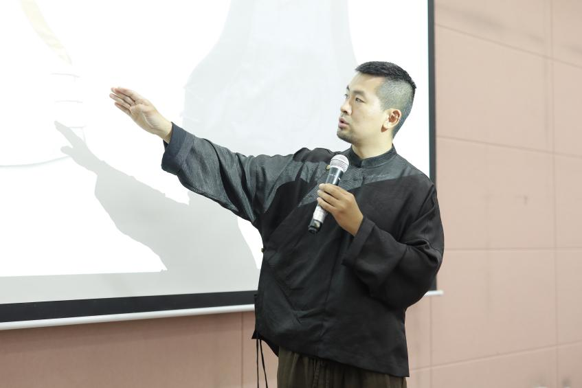 在主题报告环节,黄坤先生深入浅出地探讨了香云纱这一中国传统丝绸面料的悠久历史、精湛工艺与独特魅力,并分享了其在当代设计领域中的创新应用案例,特别是香云纱“女书纹饰”丝绸面料与纳米微囊香型技术的完美融合,令人耳目一新。而路宽先生则巧妙借鉴丝绸文化的古老纺织灵感,探索了丝绸文化基因在当代设计中的转化实践与创新思维,通过分享“中而新”的设计理念案例,深入剖析了设计思维的构建过程,为中式时尚与服饰文化在社会价值与产业发展方面提供了宝贵的“谦山实践”设计思路。
