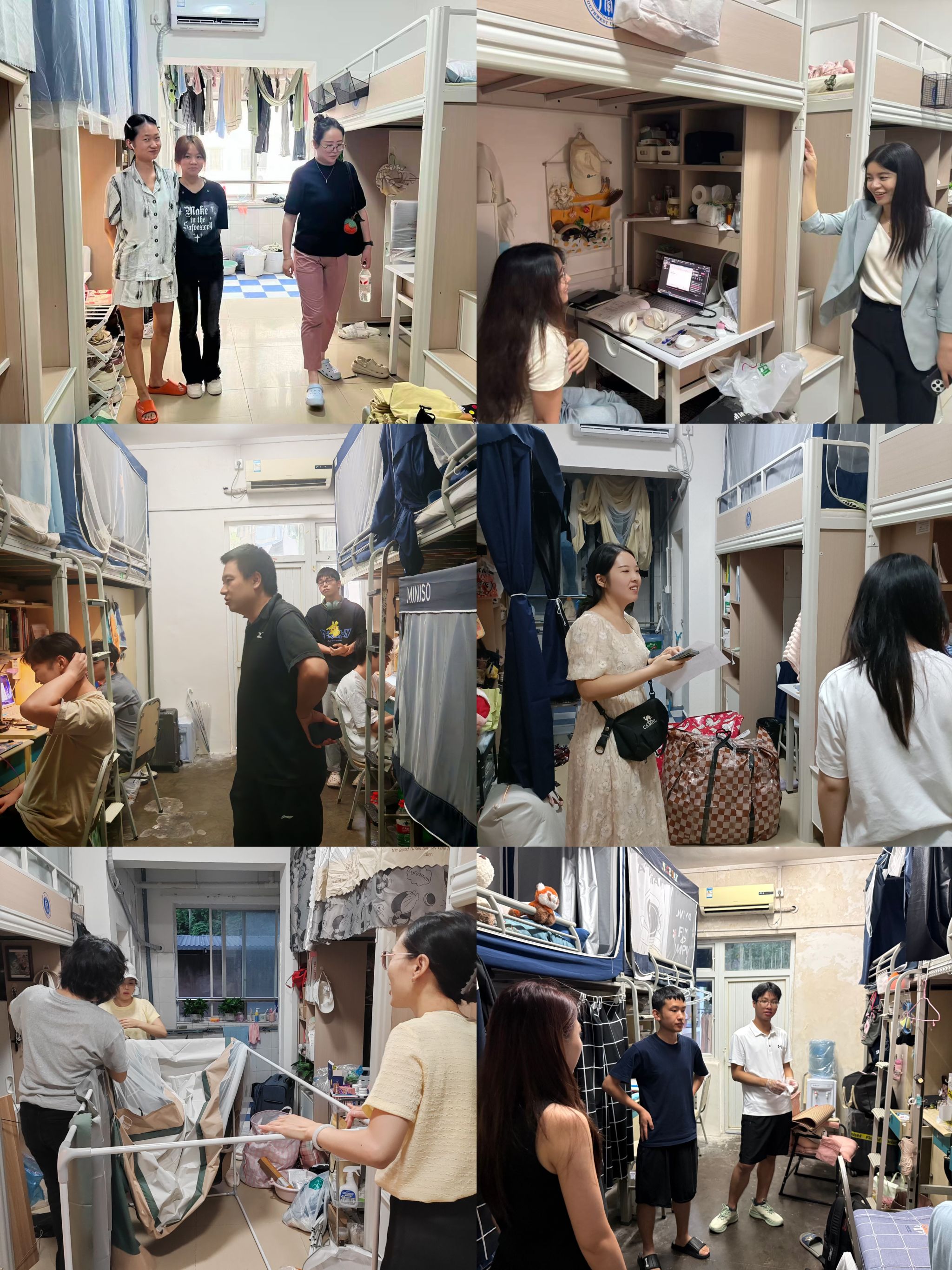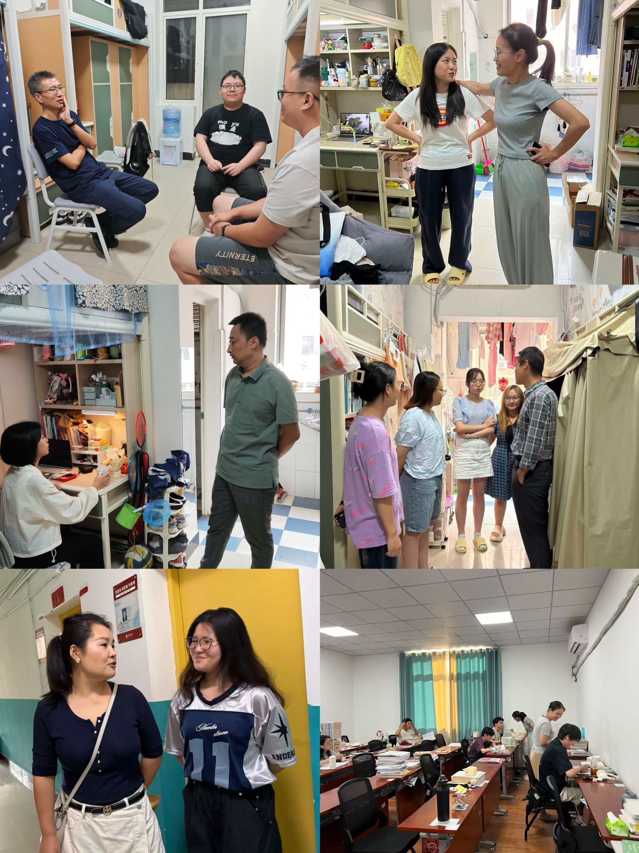 8月29日—31日期间,老澳门六合彩官网 党委书记方凤玲、党委副书记朱高峰和各年级辅导员、班主任开展了全覆盖的学生寝室走访行动,重点关注解决寝室回迁中学生的急难愁盼问题,并与学生面对面开展寝室消防安全、防诈反诈教育,提醒同学们营造良好宿舍环境,调整学习状态,尽快适应新学期的学习工作。