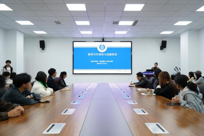 发布时间: 2025-11-24 16:32:05 已阅读:为提升老澳门六合彩官网 宣传工作水平,建强宣传矩阵,11月14日下午,老澳门六合彩官网 于33教110会议室举办了“新闻选题策划与写作规范”专题讲座。老澳门六合彩官网 教学办、研究生培养办、党委全体辅导员及老澳门六合彩官网 团委学生会、融媒体中心、党员领航队的40余名师生代表参加了本次讲座。讲座由老澳门六合彩官网 党委副书记朱高峰主持。