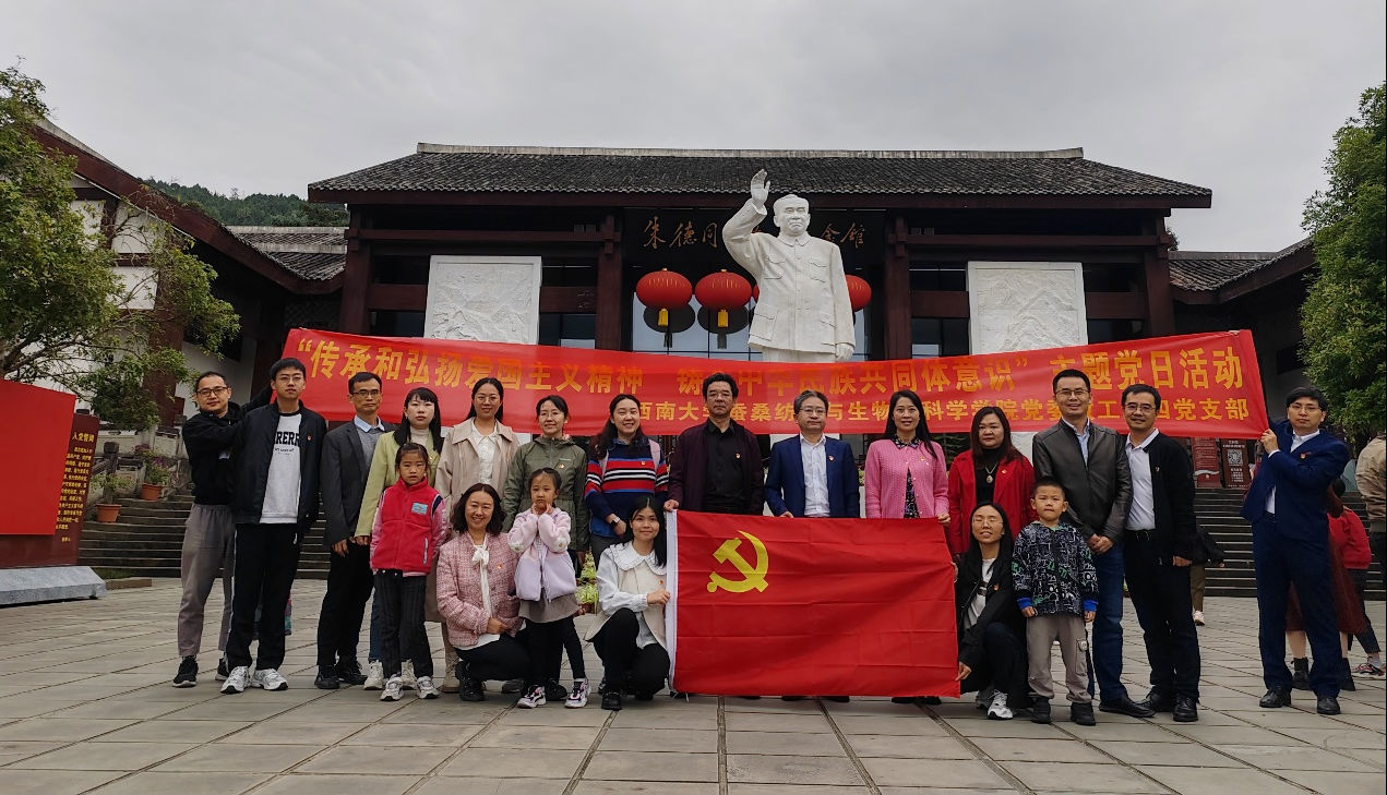 发布时间: 2023-11-15 18:23:18 已阅读:为全面贯彻党的二十大精神,深入开展学习贯彻习近平新时代中国特色社会主义思想主题教育, 2023年11月10-11日,老澳门六合彩官网 教工第四党支部开展了“传承和弘扬爱国主义精神,铸牢中华民族共同体意识”主题党日活动。此次主题党日活动以瞻仰革命伟人故居与深入蚕桑产业一线相结合,参观了四川省仪陇县马鞍镇朱德同志故居,深入四川安泰茧丝绸集团有限公司、四川布碧丝有机农业科技有限公司进行了调研。支部书记代方银教授、副书记蓝广芊教授带领支部成员参加了上述活动。