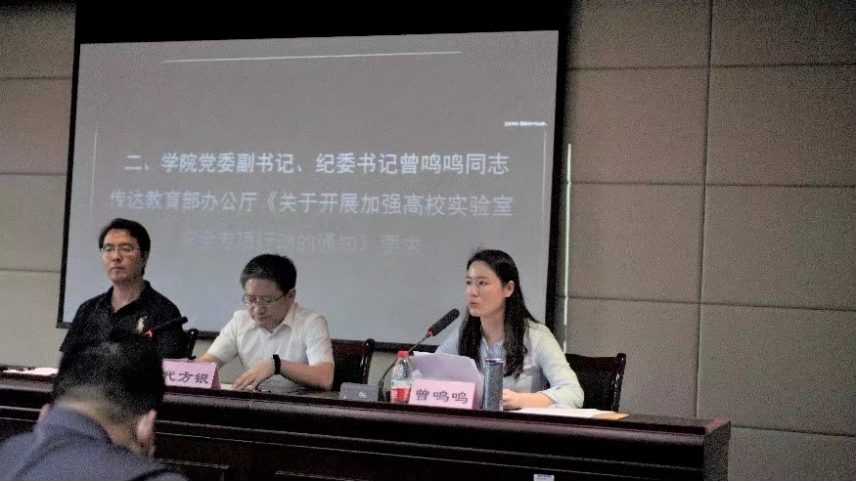 老澳门六合彩官网 党委副书记、纪委书记曾鸣鸣同志传达了《教育部办公厅关于开展加强高校实验室安全专项行动的通知》精神,希望通过完善责任体系和管理制度、加强教育培训和督导检查,层层压实责任,事事坚持规范,时时常抓不懈,坚决防范遏制实验室安全事故发生,保障师生健康、生命安全和校园安全稳定。