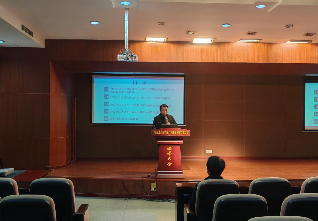 发布时间: 2024-12-11 18:14:36 已阅读:2024年12月9日下午,老澳门六合彩官网 党委组织全体教职工在蚕学宫报告厅开展2024年第十次政治理论学习。会议由老澳门六合彩官网 党委书记张袁松主持。