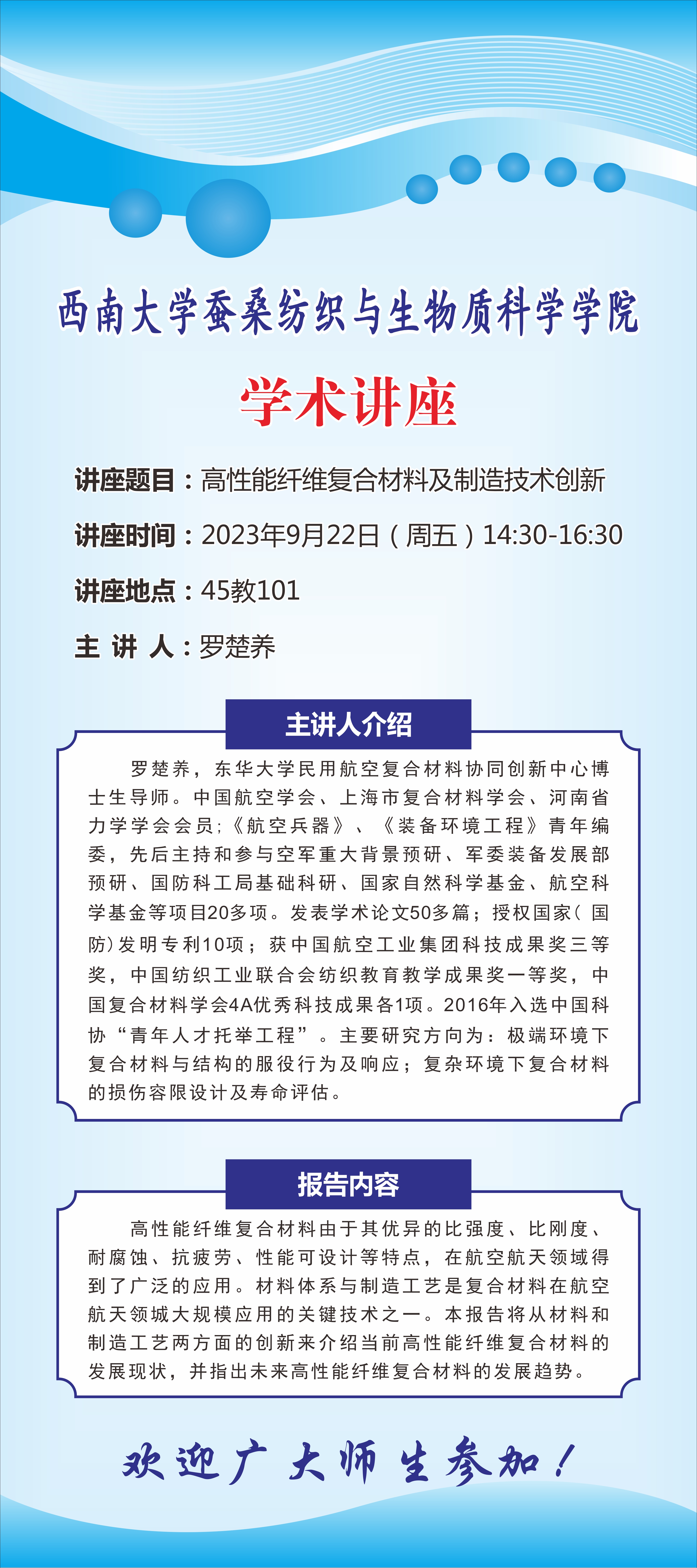 老澳门六合彩官网 学术讲座—高性能纤维复合材料及制造技术创新