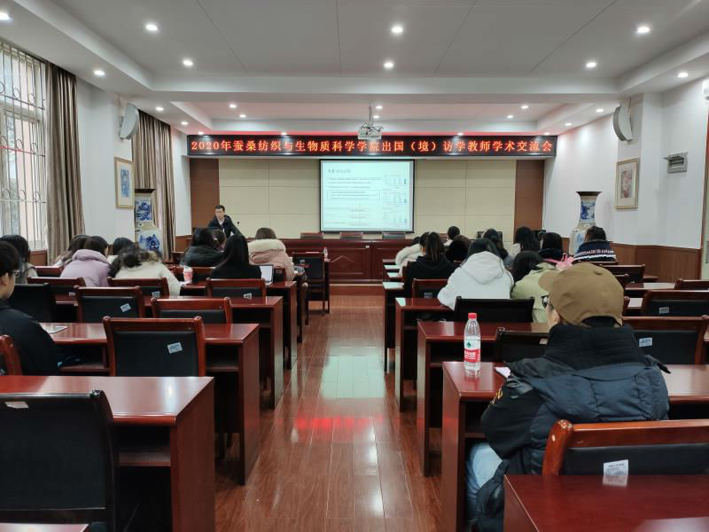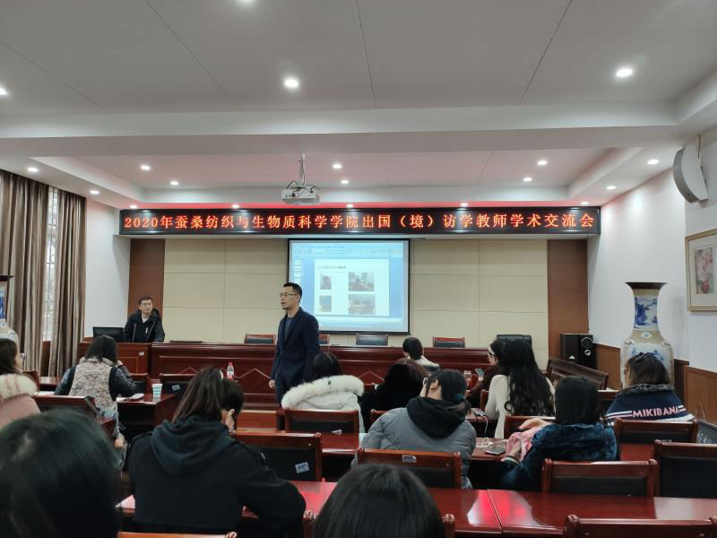 交流会在热烈的掌声中拉开帷幕。胡少营博士以“关于工作效率的服装热工效学机制”为题,就其在日本九州大学访学期间的研究课题作了详细报告。他首先介绍了关于研修主题的学术前沿动态和计划实施完成情况,简述了关于工作效率的服装热工效学机制;还分享了他在外的研修经历、经验和感受,以及九州大学的相关学科情况;在自由讨论阶段,大家就研究主题、留学申报和要求等相关问题展开了热烈的讨论。