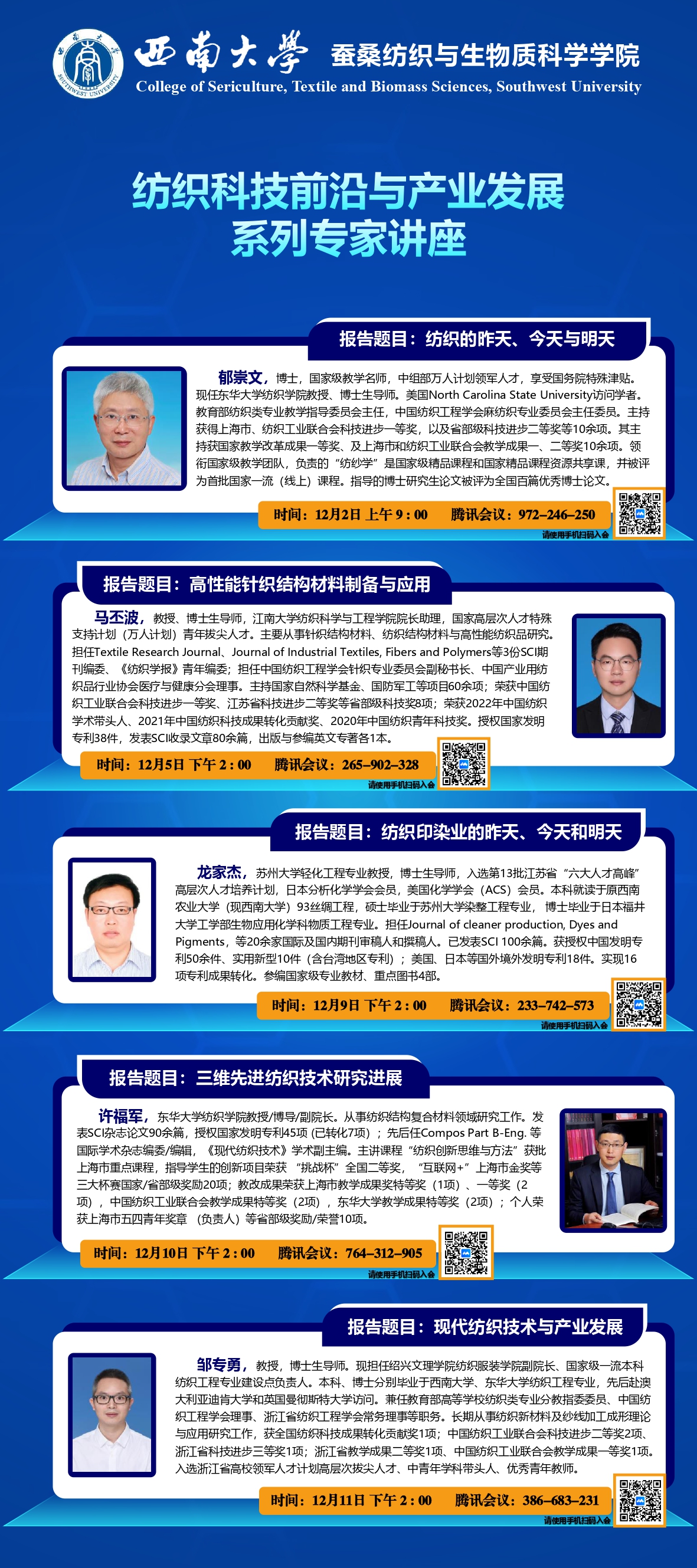 老澳门六合彩官网 纺织科技前沿与产业发展系列专家讲座