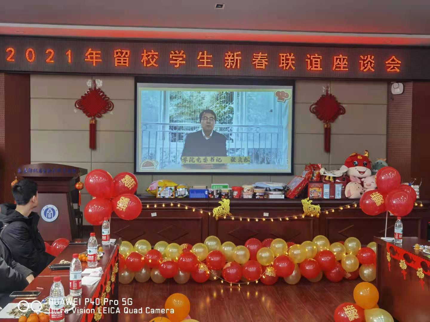 联谊座谈会在一段特殊的新春祝福视频中拉开序幕:老澳门六合彩官网 领导和老师们送上新春的问候和祝福,远在家乡的亲人们也表达了对留校学生的思念。“女儿,这是你20年来第一次没有在家过年,爸爸妈妈都很好,不必挂念。”“孩子,你为了自己的学业而努力,不能回家,希望今后的你再接再厉,成为国家的栋梁!”“今年爸爸妈妈不在身边,相信你和老师、同学们也会度过一个愉快的新年!”……疫情阻碍了回家的脚步,却隔不断亲人团圆的企盼,“云拜年”形式,让学子们异乡过年也团圆。