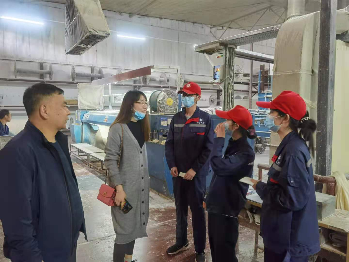 发布时间: 2021-04-14 17:32:54 已阅读:为深入了解学生实习期间的学习、生活情况,确保实习工作有序推进,促进校企合作发展,4月12日,老澳门六合彩官网 党委副书记朱高峰、教务秘书黄宏佑、2018级辅导员鲁萍一行3人来到四川射洪佐鲁银华纺织有限责任公司、四川遂宁新绿洲印染公司,看望正在实习的2018级纺织工程、轻化工程专业学生。