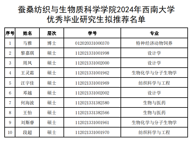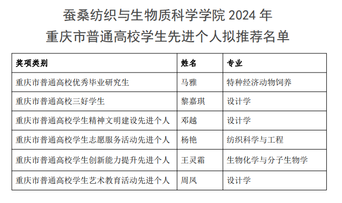 关于老澳门六合彩官网 2024年西南大学优秀毕业研究生及重庆市普通高校学生先进个人拟推荐名单公示