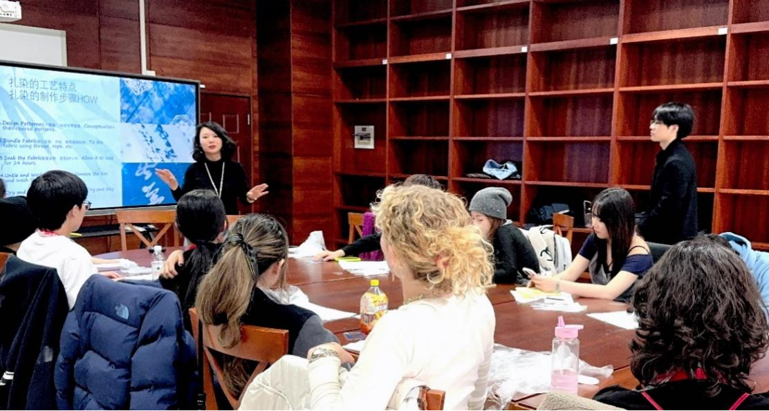 为了解中国文化,了解中国设计在全球环保事业中的努力与贡献,留学生在项目组导师,西南大学设计学杨嵋副教授的指导下,学习了关于中国传统文化艺术中与环保相关的系列课程。项目组成员研习了中国唐代墨池法、植物扎染、传统发簪制作等课程,了解了中国自古以来在面料印染,产品设计、材料工艺中的环保举措与方法。